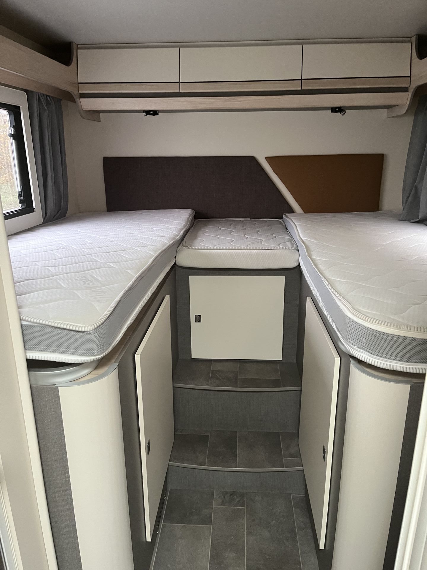 Inner: queen sized bed, 2 single beds that can be converted into a double bed, fridge with deep freezer, gas stove, wc + shower, gas heating, motorclimate, kitchen set up for 5, aircondition